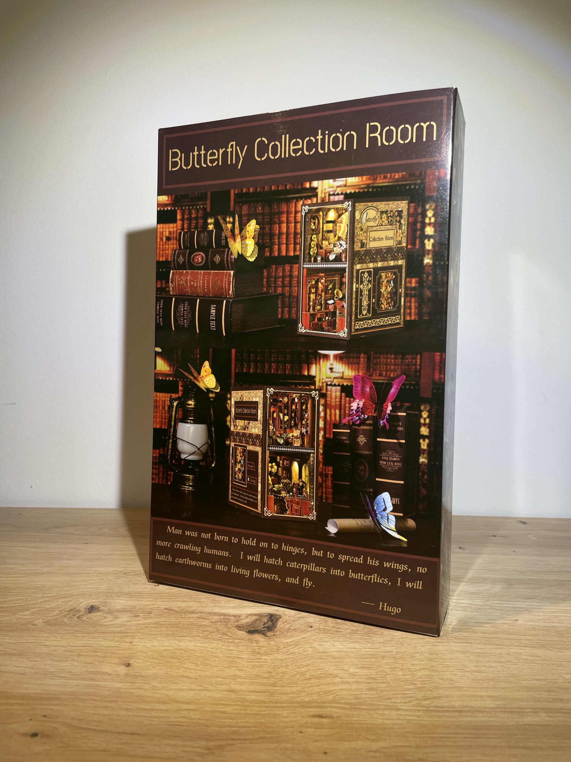 Vstopite v nežen svet narave z “Butterfly Collection”, mini sobo, posvečeno lepoti metuljev. Na lesenih stenah so razstavljeni raznobarvni metulji, kot v muzejski zbirki, medtem ko toplo svetlobno ozadje ustvarja mirno, skoraj pravljično atmosfero.